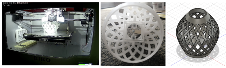 To create the lampshade (positioned at the top of the lamp), I utilised my at-home 3D printer. This enabled me to achieve a high level of precision and intricate detailing in the design.