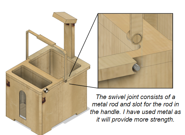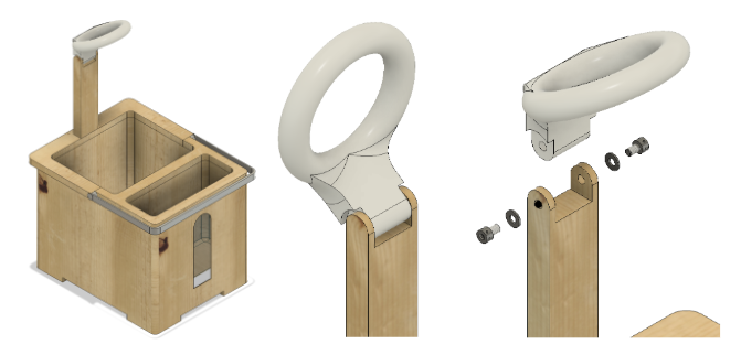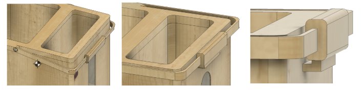 I thus switched this design to have one large handle across the width of the product as it would allow the plant pot to be carried quickly in one hand. I used a swivel joint instead of statically fixing the handle to the top of the pot.