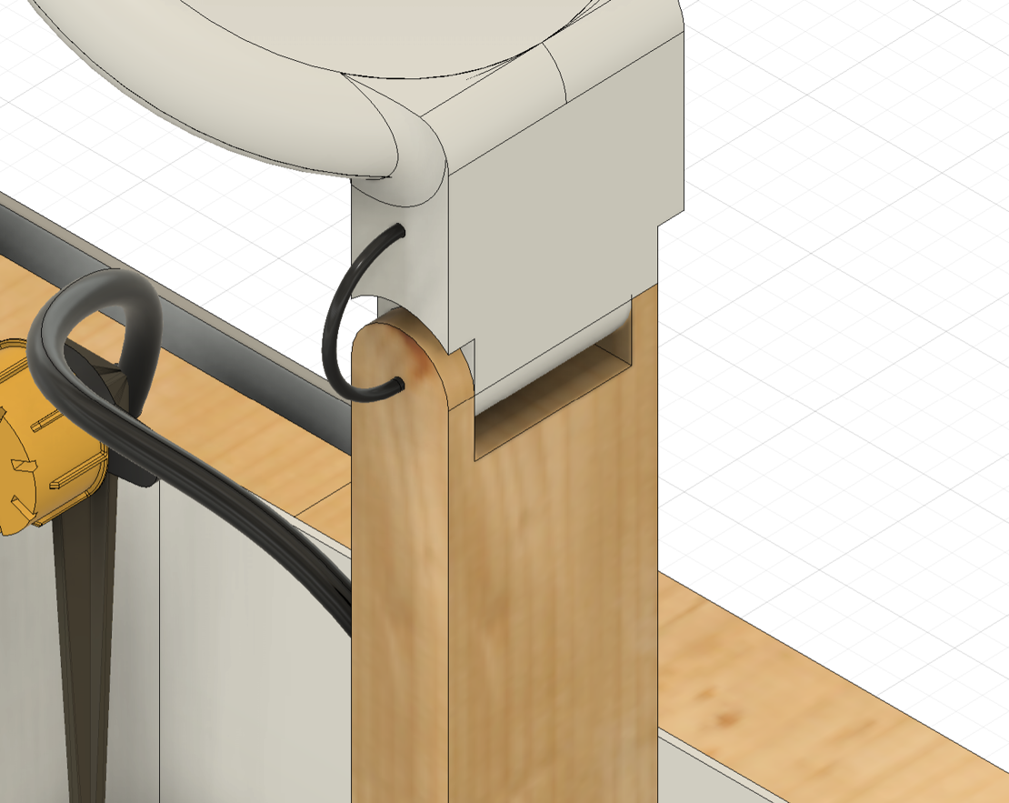 In the design above, the grow light casing is designed to be static in place and cannot be moved. However, this introduces height restrictions in this design as it may not be able to accommodate plants slightly taller than the height of the grow light. Thus, I decided to make the grow light adjustable at the joint between the 3D printed light casing and the wooden grow light arm.