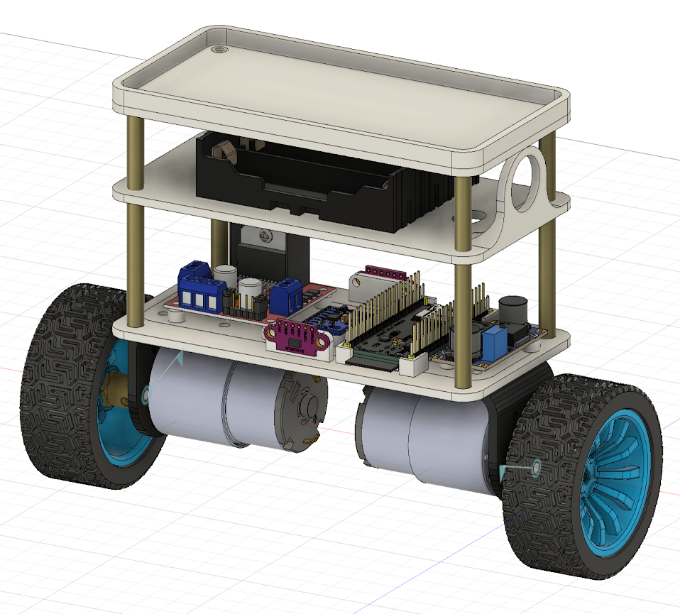 I designed a chassis in CAD, matching the simulation dimensions to ensure the centre of mass, rod length and wheel spacing were accurate.